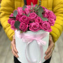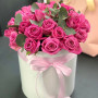 31 розовая роза в шляпной коробке в Сухом Логе