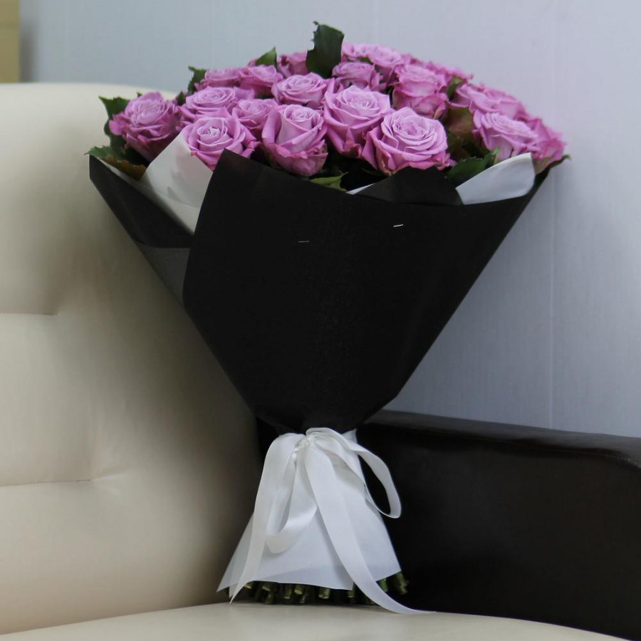 На фото букет из 51 фиолетовой розы. В составе: роза 51 шт, дизайнерская упаковка 1 шт, атласная лента 1 шт, . Все цветы свежие и ароматные, букет красиво оформлен и отлично подходит для подарка. Доступна доставка цветов или самовывоз.