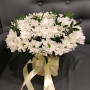 На фото хризантема белая и гипсофилы в коробке. В составе: хризантема кустовая 11 шт, гипсофила 5 шт, аспидистра 4 шт, коробка (m) 1 шт, бруния 1 шт, . Все цветы свежие и ароматные, букет красиво оформлен и отлично подходит для подарка. Доступна доставка цветов или самовывоз.