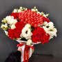 На фото клубника с гвоздиками. В составе: клубника (400 гр.) 1 шт, гвоздика 9 шт, эустома (лизиантус) 5 шт, кустовая роза 2 шт, крафт-бумага 1 шт, . Все цветы свежие и ароматные, букет красиво оформлен и отлично подходит для подарка. Доступна доставка цветов или самовывоз.