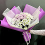 На фото розовые и белые хризантемы. В составе: хризантема кустовая 13 шт, крафт-бумага 1 шт, . Все цветы свежие и ароматные, букет красиво оформлен и отлично подходит для подарка. Доступна доставка цветов или самовывоз.